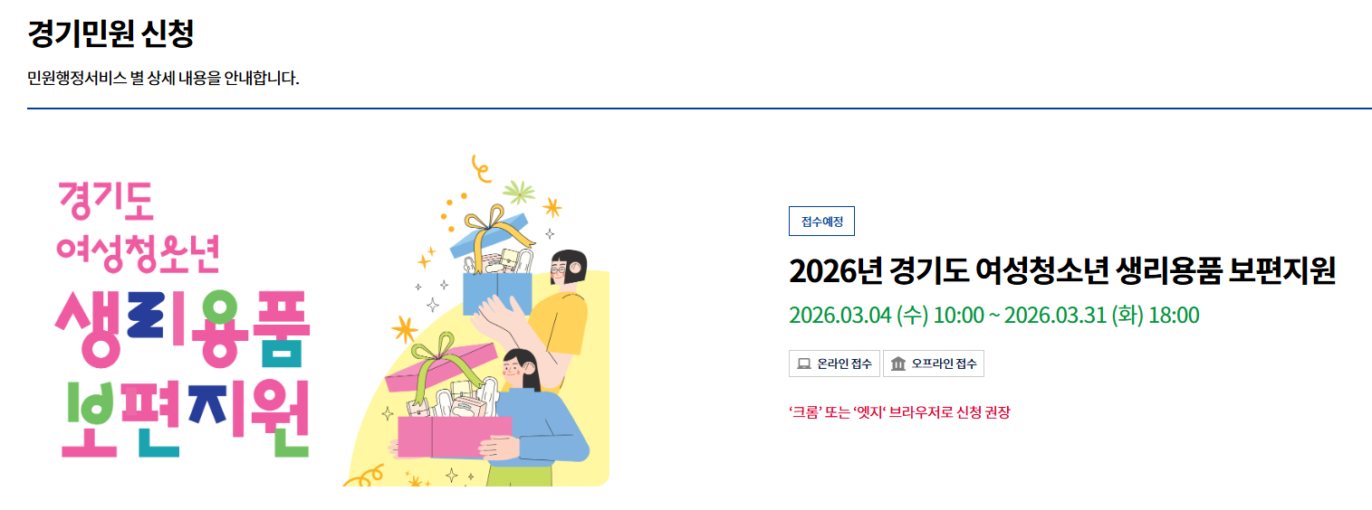 2026년 여성청소년 생리대 지원 신청 일정은 다음과 같아요.