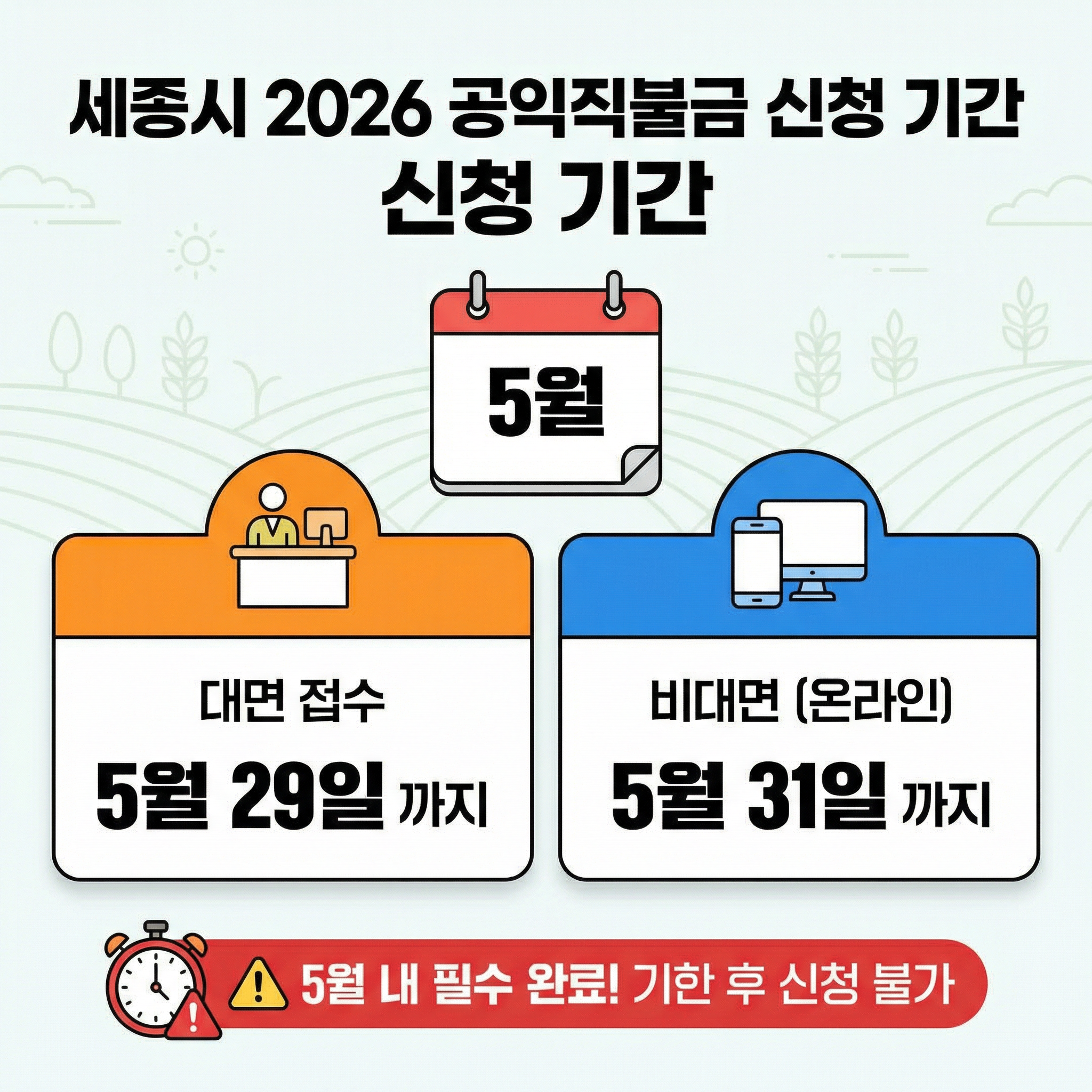 2026년 세종시 공익직불금 신청은 5월 말까지예요.